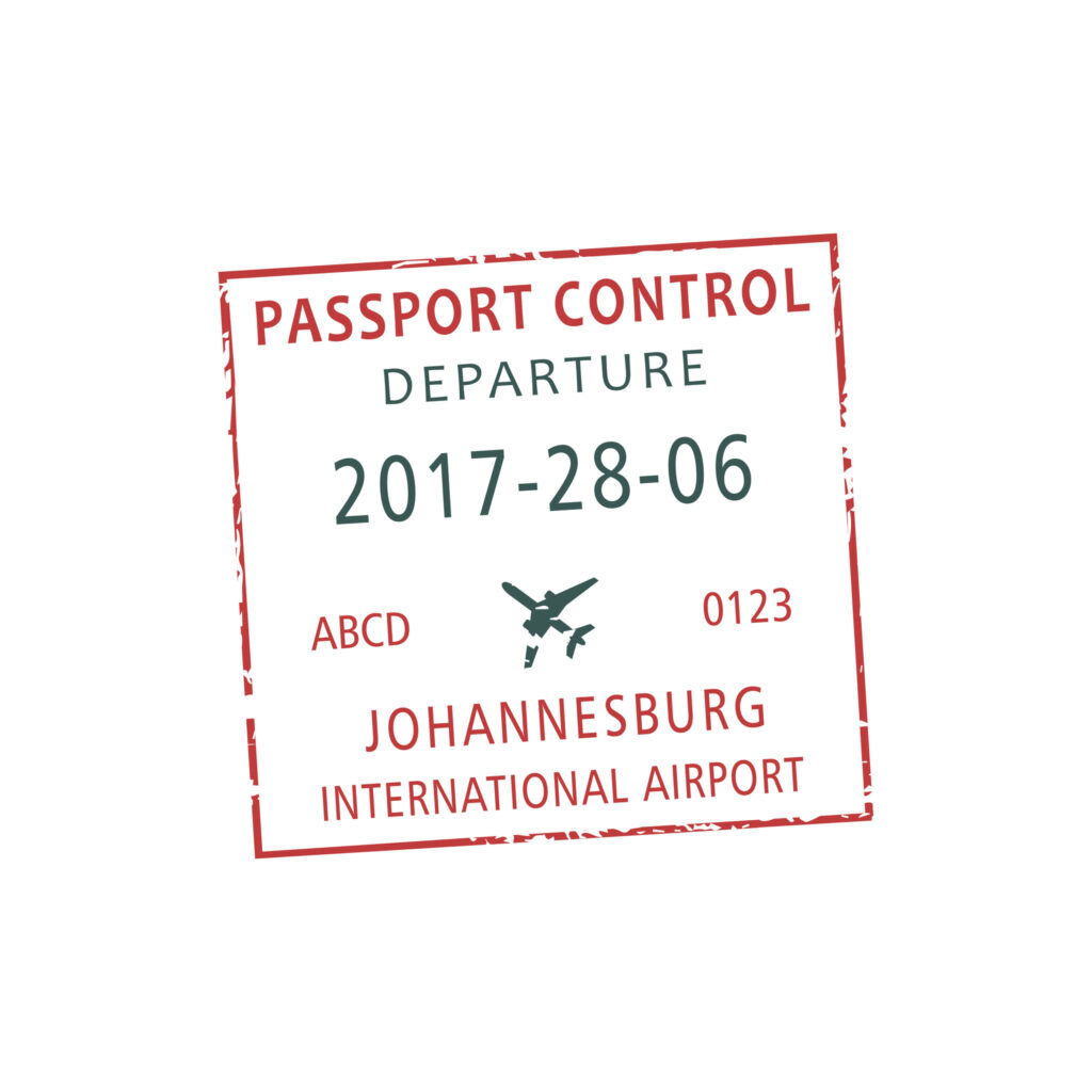 Johannesburg international airport departure visa stamp isolated. Vector South Africa border passport control