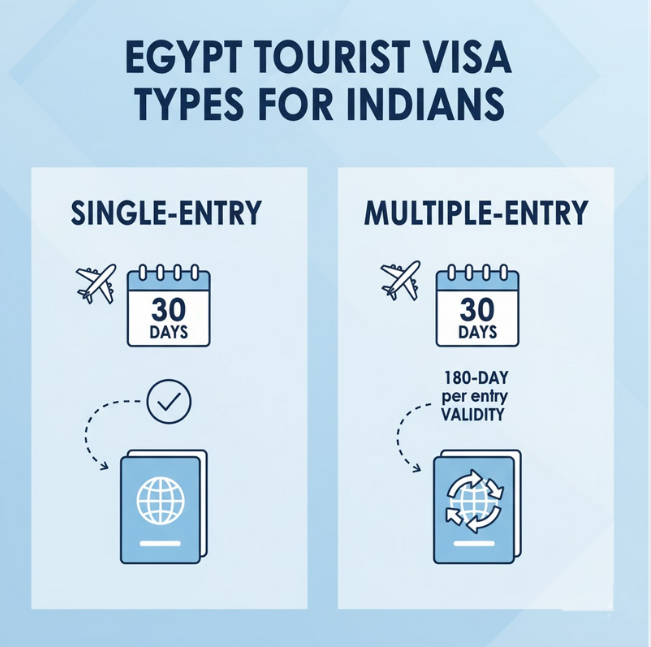 For Indian citizens, Egypt mainly offers the Tourist Visa, which can be applied for online through the e-Visa portal. This visa is ideal for sightseeing, vacations, or visiting friends and family.