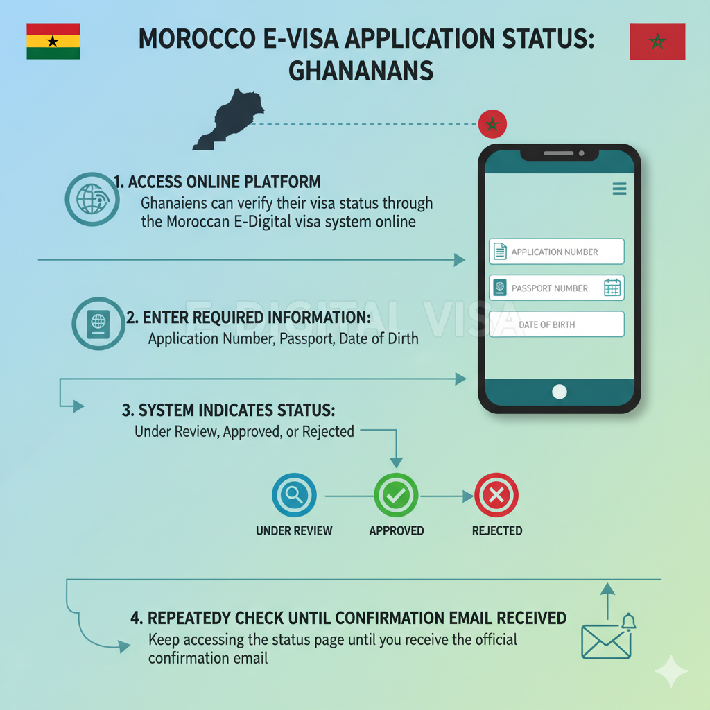 - Ghanaians can verify their visa status in the Moroccan E-Digital visa by means of a network.