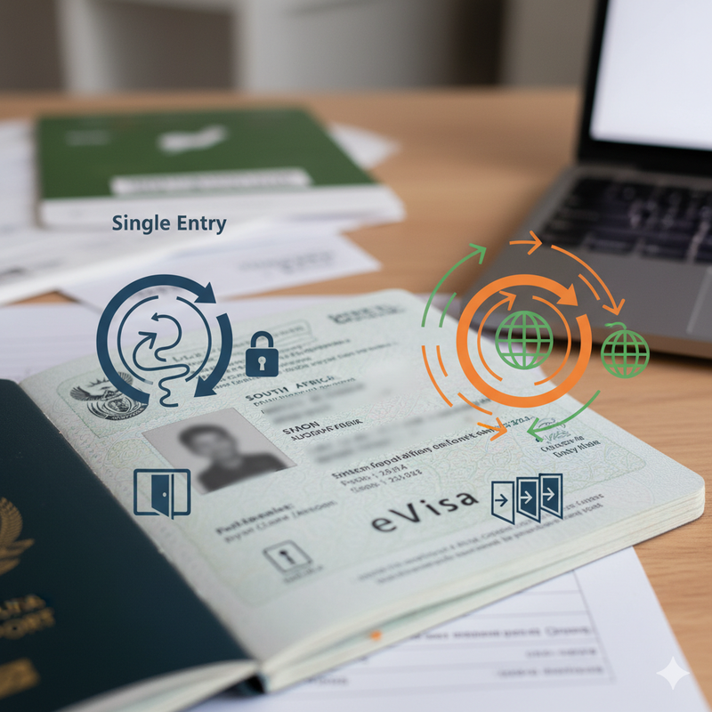 Q: Can I travel on the eVisa, exit South Africa and re-enter under the same visa? A: That depends on whether your visa is issued for single or multiple entries. You must check the specific wording of your visa approval. If it’s “single entry”, you cannot exit and re-enter under that visa.