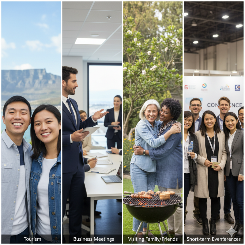 Understanding why you’re travelling is just as important as the how. With the South Africa eVisa, Chinese citizens (and other eligible nationals) may apply for travel under a variety of permitted purposes. Some of the common ones include:
