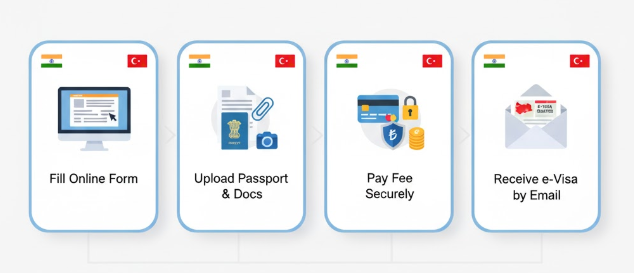 Yes — Indian citizens can apply online for Turkey e-Visa. The steps generally followed are: