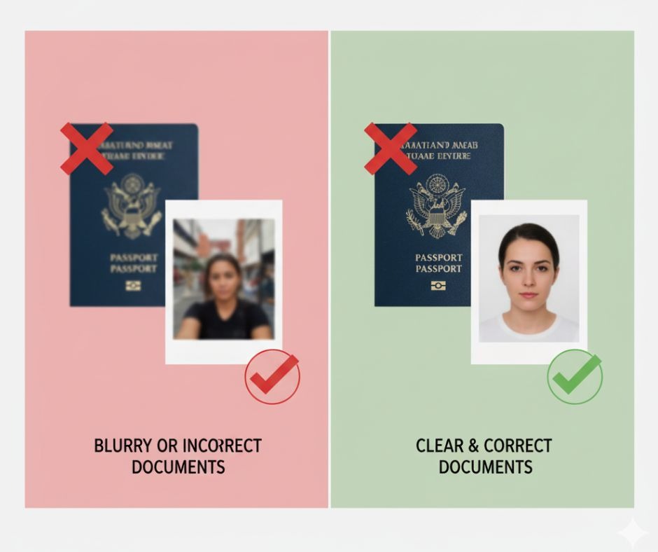 - Incorrect passport details (even one wrong letter can cause rejection).